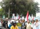 Ribuan massa umat Islam berunjuk rasa di Tugu Adipura depan Masjid Agung Kota Tasikmalaya, Jl KH Musthofa, Jumat (28/10/20416).
