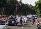 Ribuan warga Cibubur, Jakarta Timur memenuhi jalan-jalan Kota Wisata mengikuti Parade Tauhid yang diselenggarakan Masjid Darussalam.