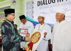 Menteri Agraria dan Tata Ruang Badan Pertanahan Nasional (BPN), Ferry Mursyidan Baldan didampingi oleh Direktur Eksekutif Baitul Mall Hidayatullah (BMH) Wahyu Rahman memberikan apresiasi ?Dai Tangguh? secara simbolis kepada beberapa dai Hidayatullah.