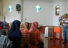 Astagfirulloh! Aceh mulai hancur, demikian salah satu komentar salah seorang Netizen dalam akun resminya, SerambiNews.com yang menampilkan foto berderet wanita berhijab yang sedang khusu mendengarkan pendeta berpidato di gereja