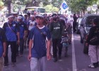 Elemen masyarakat Klaten yang tergabung dalam LAKIK ( Laskar Islam Klaten) melakukan long march untuk mensosialisasikan fatwa MUI tentang haramnya ikut natal, Jumat (19/12/2014).