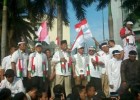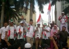 Dalam Aksi solidaritas atas pembataian dan genosida di Jalur Gaza Palestina di Bunderan Hotel Indonesia,Jumat (11/7). Salah satu Calon Presiden nampak hadir Prabowo Subianto.