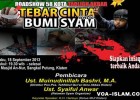 Hadir dan Ikutilah Tabligh Akbar dan penggalangan dana bertajuk TEBAR CINTA untuk BUMI SYAM besok Rabu 18 September 2013 jam 19.30 - selesai di Masjid An Nur Sangkal Putung Klaten Jawa Tengah (Barat Terminal Klaten Kota) bersama ustadz DR Mu'inudinillah Basri & ustadz Syaiful Anwar. Siapkan Infaq Terbaik Anda..