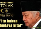 Diantara dasar penolakan FPI terhadap kontes maksiat Miss World adalah larangan yang disampaikan Presiden Soeharto di era orde baru ketika itu. Saat itu presiden Soharto menyatakan bahwa Miss World maupun Miss Universe bukan budaya bangsa Indonesia