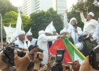 Di atas mobil bak terbuka, Sekjen Komite Advokasi untuk Muslim Rohingya-Arakan (KAMRA), ustadz Bernard Abdul Jabbar, selaku koordinator lapangan (korlap) membakar semangat kaum muslimin Indonesia untuk membela muslim Rohingya yang dizalimi pemerintah Myanmar dan ekstrimis Budha.