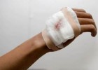 Cara wudhu' tangan yang diperban cukup mengusap di atas perbannya. Tidak harus membasuhnya karena akan menyebabkan mudharat pada lukanya. Adapun anggota wudhu' yang tidak luka dan tidak diperban harus dibasuh dengan air.