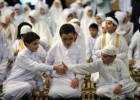 ''Apabila orang yang masbuq datang shalat sedangkan imam berada di tasyahhud akhir, maka ia duduk sebagaimana duduknya imam dan duduknya jamaah shalat yang tidak terlambat.'' Syaikh Abdul Muhsin al-'Abbad.