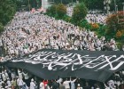 Puluhan bahkan ratusan ribu atribut bertuliskan kalimat tauhid menyelemuti Kota Jakarta. Massa mengibarkan bendera-bendera yang dibawa. Mereka berangkat dengan jiwa
