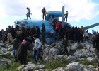 Sikap pengecut dan cengeng ditunjukkan oleh kru pesawat helikopter rezim Bashar Al-Assad yang tertangkap oleh mujahidin dan warga setelah helikopternya "mendarat darurat" di wilayah kekuasaan pejuang oposisi Idlib, di barat laut Suriah pada hari Ahad (22/3/2015).