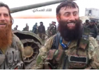 Seorang ulama terkemuka Saudi dan komandan militer Chechnya dalam unit Jabhat Al-Nusrah, cabang resmi Al-Qaidah di Suriah, merayakan kemenganan bersama setelah pertempuran sengit baru-baru ini melawan pasukan pemerintah Suriah di daerah pegunungan di provinsi pesisir Latakia.