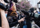Polisi anti huru hara Hong Kong membubarkan unjuk rasa solidaritas untuk warga Uighur pada hari Ahad (22/12/2019) - dengan seorang perwira yang sedang menembakkan pistol - ketika gerakan pro-demokrasi kota itu menyamakan penderitaan mereka dengan minoritas Muslim yang tertindas.